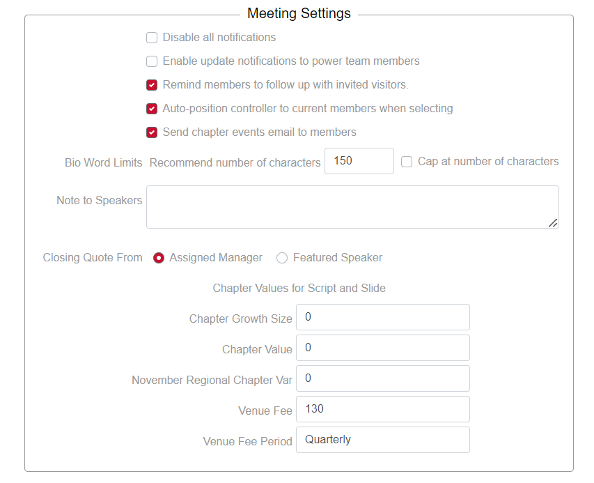 - The Closing quote can be set by the member manager or featured speaker(s).