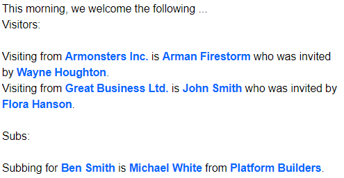 Paste the weekly self-registration URL in the meeting chat so that visitors and subs can register themselves and appear as present.