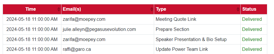 All notification emails are logged, and their delivery status is tracked.