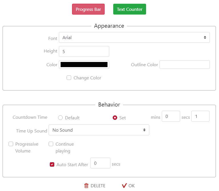 When using progress bar timers, the Start Full options will fill the bar and empty it with time.