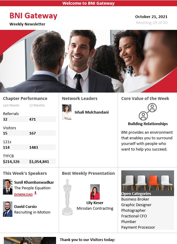 The chapter newsletter is an email publication designed to recap the meeting and follow up with all attendees.